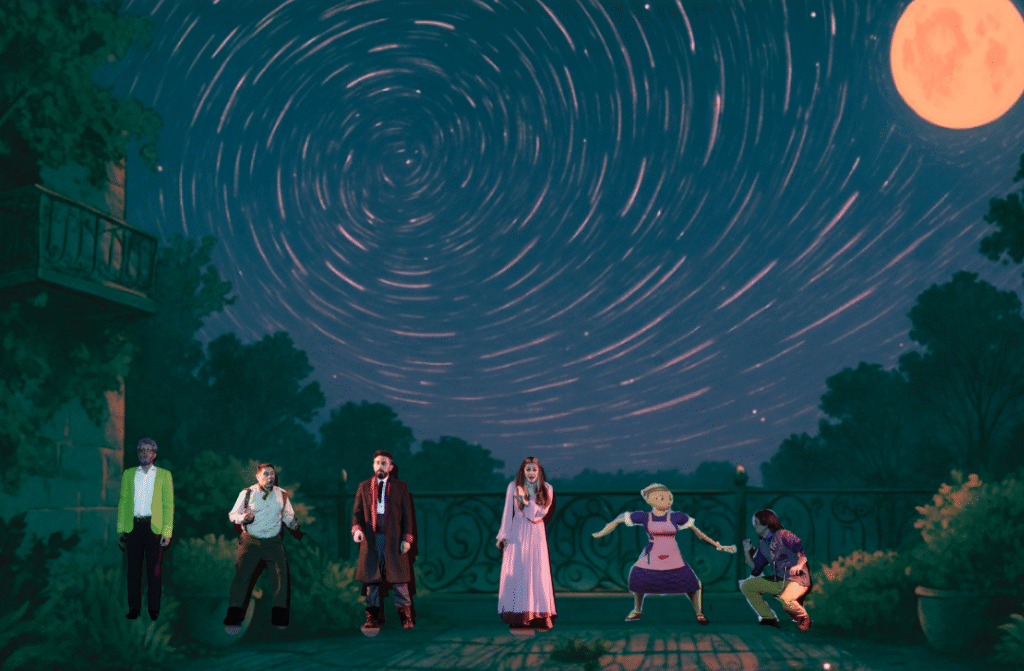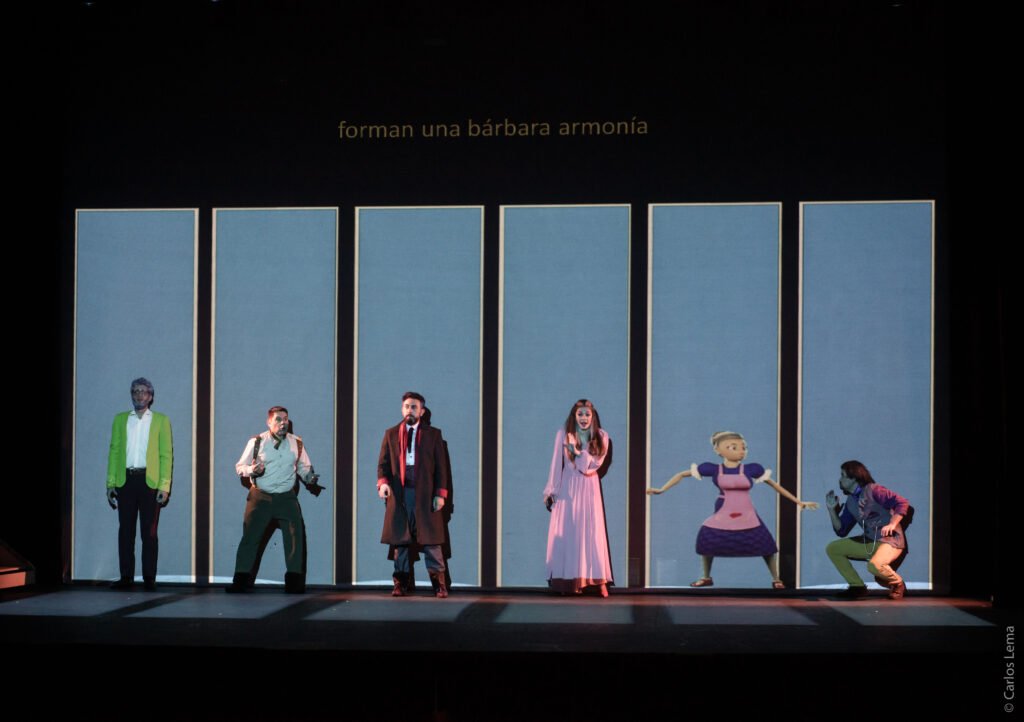 En esta versión del Barbero de Sevilla hemos incluido personajes animados que interactúan con los personajes reales.